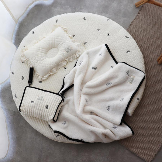 【11/22 PM2時頃再入荷 ribbon black】ふわふわファーブランケット 刺繍(heart beige・ribbon black)約70×85cm Sサイズ