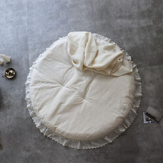 《OUTLET 3/24, 20시~3/27》 양면 사용할 수 있는 이브르 라운드 러그(환세척 타입) eyelet lace 레이스・french frill 라운드 러그 래그 매트 누비