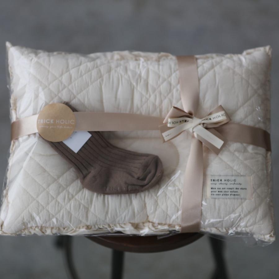 baby 이블 cloud 무늬 안솜 증량(약 80×120 cm) 로제타+실리콘 비브 밀크 핑크+양말 2 다리(베이지, 브라운) 7~9 cm